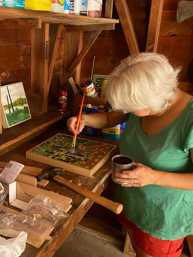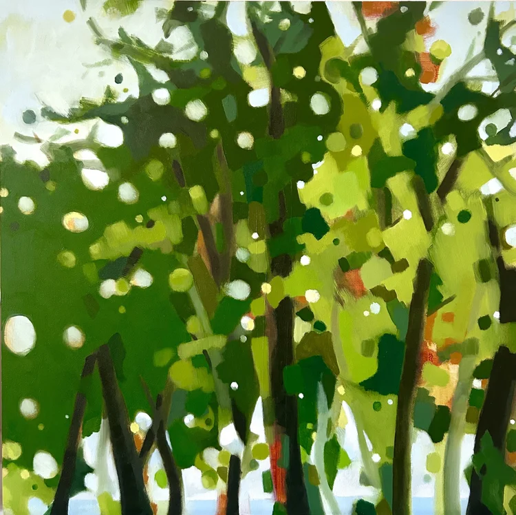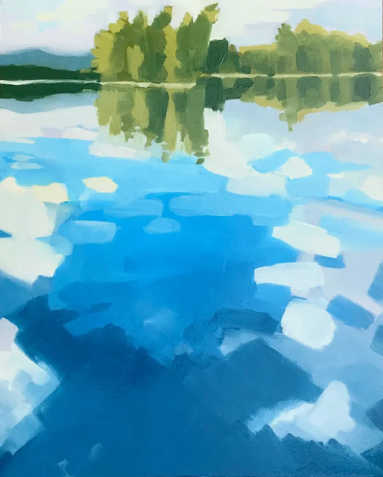 After a long career in design, Susan Levin returned to painting and drawing in 2020. Since then, she has been most inspired by the natural landscape. Her observation of the sky, woods, and water also feed her abstract work. Susan spends a lot of time in rural New Hampshire, and has lived in Brookline Village since 1995.